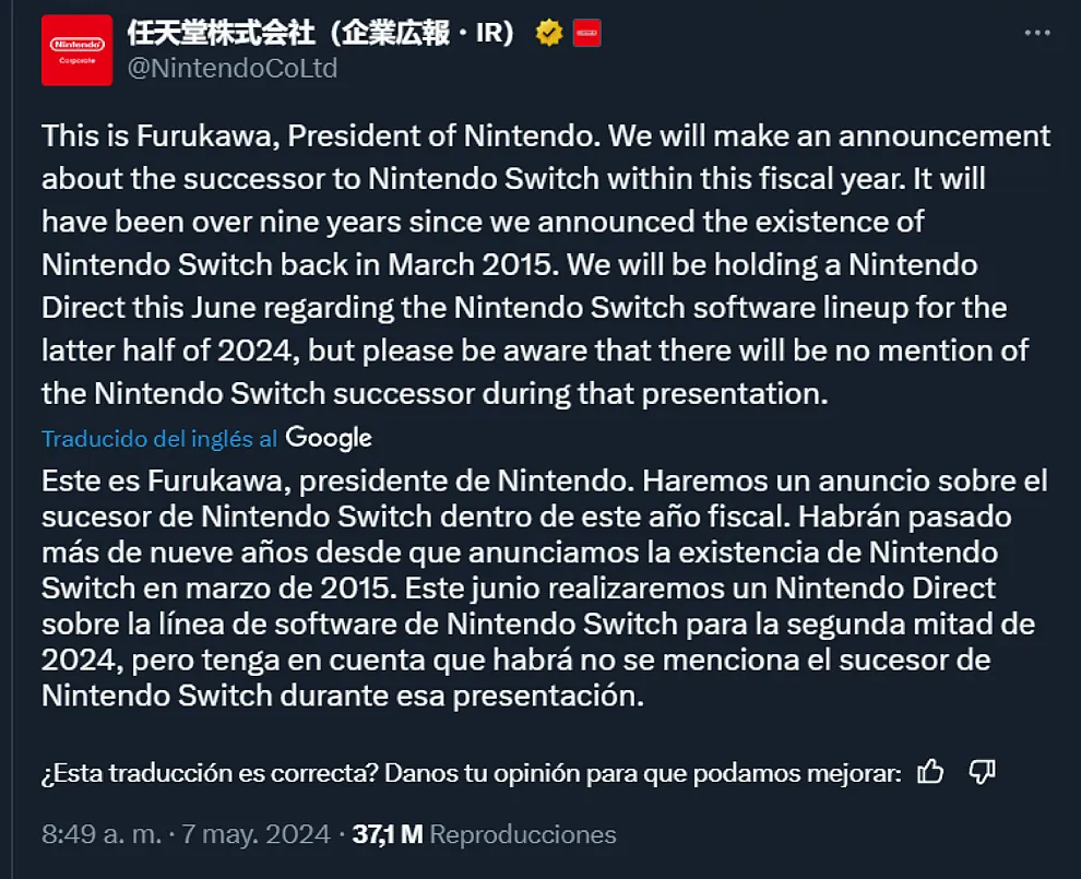 Habrá un Nintendo Direct en junio, pero aún no se ha confirmado la fecha. Nintendo ha anunciado que no se presentará la Nintendo Switch 2. Sin embargo, se espera la presentación de varios juegos que llegarán en 2024, incluyendo posibles remakes.