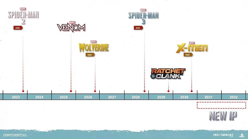 Los títulos filtrados de Insomniac Games para los próximos años son: